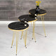 Elevate your space with sophistication and style with this exquisite 3-piece table set featuring a sleek modern design. Crafted with sturdy metal legs for durability and stability, each table in this set boasts a luxurious golden border that adds a touch of opulence to your décor.